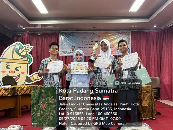 SMAN 15 Padang berhasil meraih peringkat 2 pada Lomba Debat Sosfair 2025 Universitas Andalas se-Sumatra, Sabtu 27 September 2025 ini. Kepala SMAN 15 Padang, Bapak Gusnaldi, M.Pd menyampaikan rasa bangganya..